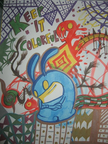 I don't really know where this would go, but my best guess is Conceptual. XPSo I worked on this poster a few days before Christmas and it took me around 15 min. to draw plus outline, 15 min. to spatter paint like that, and another half hour to paint Blob. (paint-splattered outside the house)