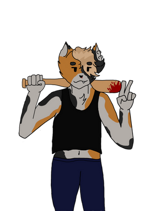 #cat #fursona #feline #digitalart #characterdesign #originalcharacter #furrymale #baggyclothes #baseballbat #baseballcap #sagging_pants #trans_male