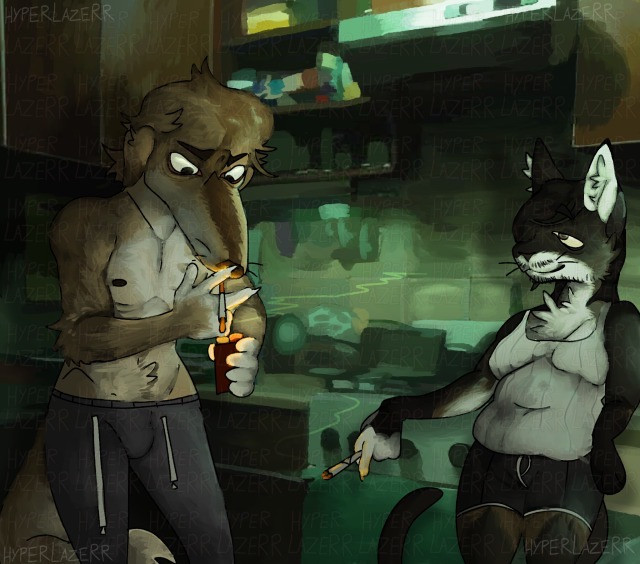 #digitalart #cat #dog #feline #originalcharacter #canine #chubby #digitalpainting #fluffy #longhairedmale #paws #piercings