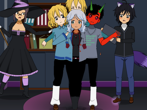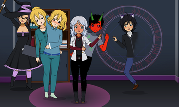 With another Wave Another spell is drawn from the scroll, as Term seems to start mirroring his new fellow lab rats. Only This body seems to resemble Term a bit more. It is Term, at least if Term was a girl. Complete with all the memories. She has some choice words for him about how he's currently living his life, how much he works, how he could stand to go out more. Term is more shocked than embarrassed. Of all people he expected himself to be on his side. By Now Damien has fully finished appearing, much to Jenny's Dismay. Lacy Decides it best to continue sending spells... anything to change the tone Term's double is giving.Thank You www.deviantart.com/lonicenders… again for Damien