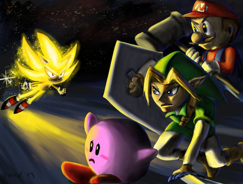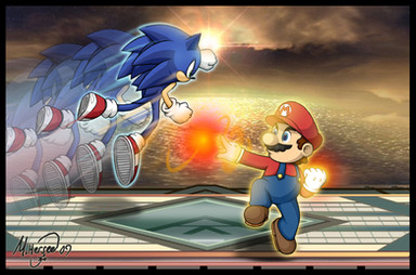 Here is the famous battle of Mario and Sonic, both doing their Final Smash!I don't know if that stage is on the SSBB to, but I'm not in the mod to work a detailed background haha!