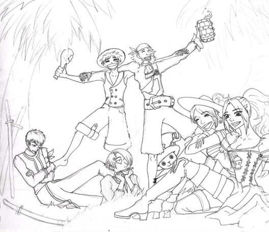 It's bright, it's colorful, and it got me drawing again, so I'm pleasedThe crew (with Vivi) of One Piece. I really like Vivi and I miss her. *sigh* I had fun with this one, too much for the detail is perhaps lacking, but oh well.