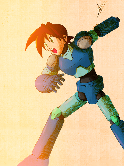 I see you've drawn Mega Man's most recent armor style. That's pretty nice. You should add it as a part of the GetMeOffMoon International Fan Art movement.