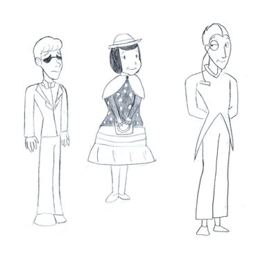 Radio was probably the hardest, especially considering the fact that he doesn't have a face. For his eyes I gave him these shudder-sunglasses. I also thought he'd wear some kind of snazzy suit based on his personality. I was near clueless on how to encorporate the zig-zaggy antenna, and I didn't want to copy others with the tie, so I kind of turned it into a tie pattern instead. I tried my very hardest not to make him look too much like the Music Meister from Batman the Brave and the Bold.