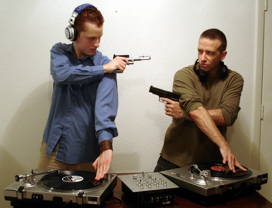DJ Promo shoot for SHOCK:FORCETo put this photo into context, The shoot was a progression from the DJ's being kidnapped by their female captor though to escaping. You can see most of the whole set here. [link]