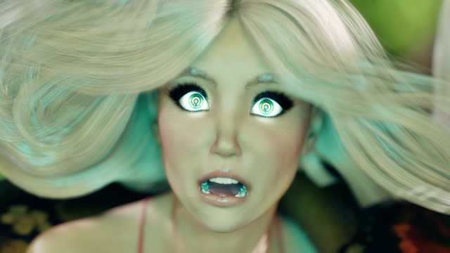 Some people pretty much hypnotise themselves; once they know you're a hypnotist, it's difficult for them *not* to drop...Doooooont asked if I could use the spiral eye effect from the Manchurian Charlie pic, so here it is.