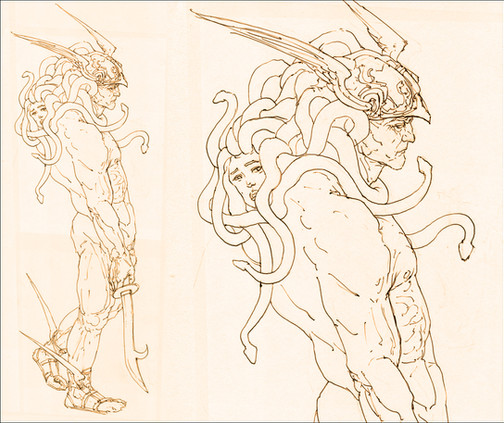 cleaning the background too - though only if it's too disturbing in the first place, I generally like the sketchy feeling of a drawing (here i cleaned it because I tried many configurations for the horns, and couldn't properly erase them. also it was drawn on two separate A4 sheets and they never scan at the exact level - and the merging of the two drawings is never perfect if you don't adjust a little)