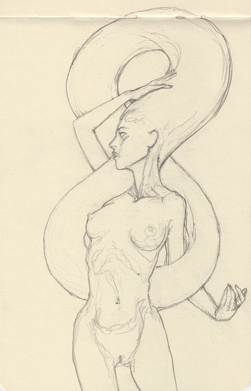 Really interesting sketch, love the flow and direction you have added to the image with her pose and hair! Well done!