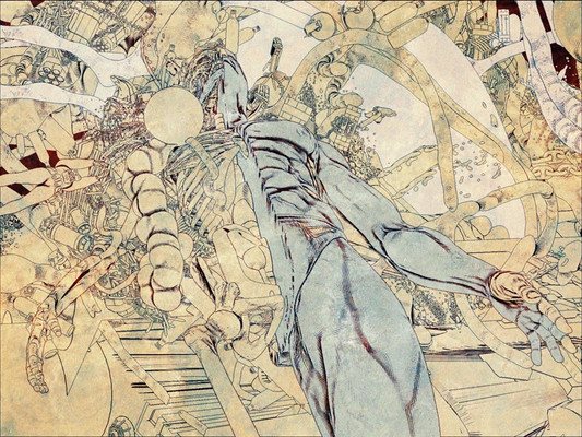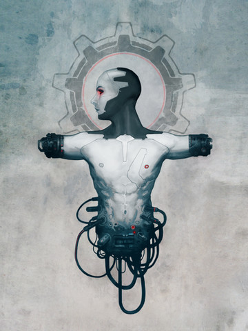This looks great, Reminds me of the Vitruvian Man, but for a cyber punk setting. Β The paper texture is a really stark contrast from the subject matter. Β Great effect. Β Will be watching!