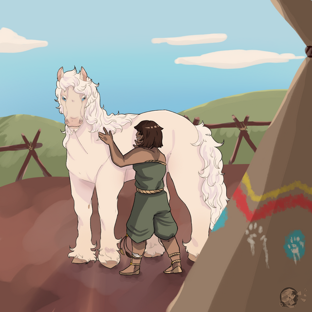 I've been sitting on this for a few days, waiting for my Haspar to be approved haha - someday, I will learn to draw horse legs/ Hopefully this qualifies!Romet had not expected to be traipsing his way back to the breeder for inspection so soon, but during his travels in search of bait - he came across a very large, and unruly stallion - a story for another time.