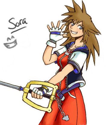 Really great! I love character cross-over art! ^^!! Square Enix should make her the new face of KH!!