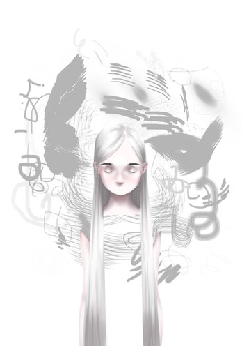 #blackandwhite #dark #deep #digital #digitalart #digitalpainting #drawing #gray #light #nomouth #painting #silver #thoughts