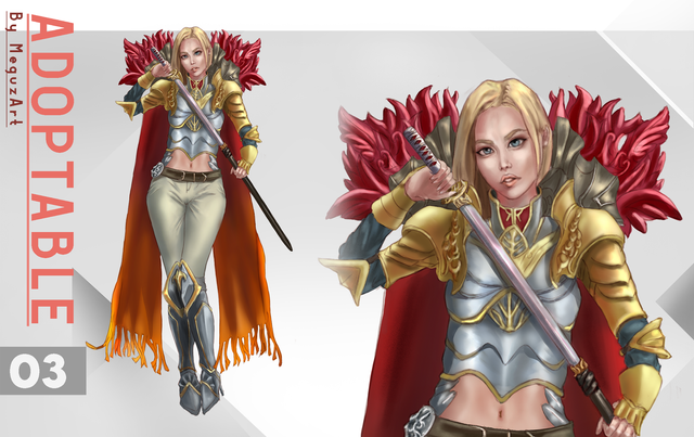 #characterdesign #adoptable #warrior #adoptablesopen #fantasycharacter #adoptableauction #fighter #warriorwoman #knight #originalcharacter #characterconcept #sword #digitalart #anime #fantasyart #armored #digitalpainting