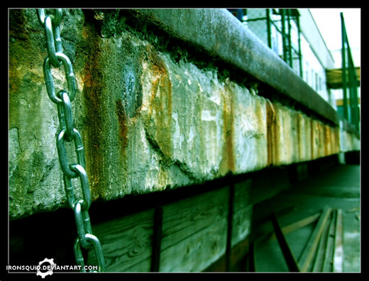 I took a series of photos in the company parking lot this morning. Mostly closeups of cars.This is some metal grating outside our building. I liked how the rusty chain lazily stretched out into the background.