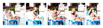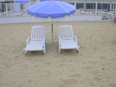 Anyway, this is a shot of 2 plastic beach lounge chairs. Sort of like the California Sofas (imagine these chairs the width of a love seat, about 8" thick and covered in shag/furry apulstery (sp)).