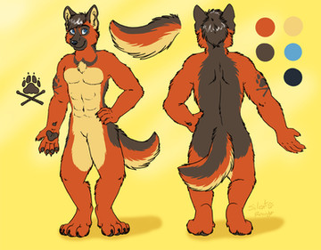 Reference sheet of the adoptable that vyti got from me <3 I was SO happy to draw more of him and I'm super excited for seeing more art with him in the future, thank you so much again!I've got another German Shepherd adoptable open at the moment, by the way! For $120 you can get him + a ref like this one, or you can simply get the design for less