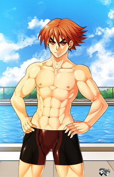 "You will continue to swim lapse for the next hour. Β After you are done, you will report directly to my office where we will discuss a more intense training program for you, one that will instill much needed discipline." Β "But coach, it's Saturday." Β "Do you defy me? Β Shall I remove you from the team?" Β "No, please don't. Β I'm sorry. Β I will do everything you ask of me." Β "Good, and know this. Β I will ask much, believe me and we will begin right after you finish your lapse. Β Now, begin." Β He is cute.