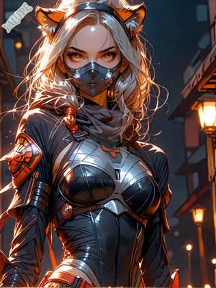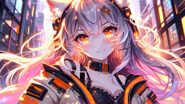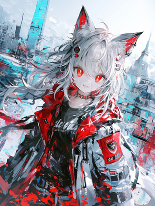 #anime #characterdesign #videogamefanart #warrior #bangs #breasts #building #jacket #outdoors #snow #snowing #solo #tree #animal_ears #silver_hair #looking_at_viewer #upper_body #medium_hair #medium_breasts #bare_tree #hair_between_eyes #animal_ear_fluff
