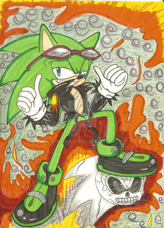 My fan character is Sonic's nephew, and since Scourge is Anti-Sonic, Anti-Lightning is Darkness the hedgehog