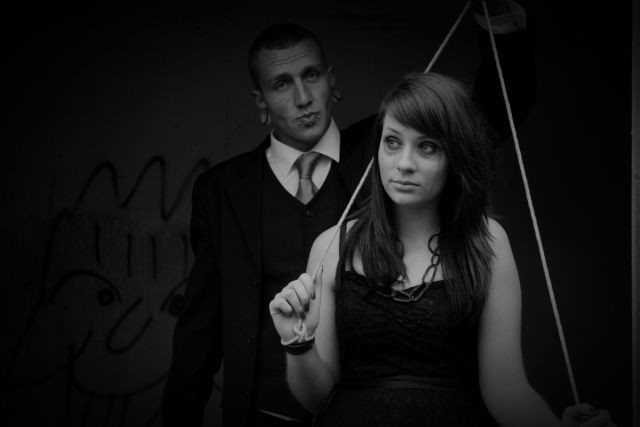 But now to the photo: I like it. It looks so unreal, like a scene from one of the billion-dollar rip-off productions. He looks like the evil one and the girl on the back is going to be his victim... somehow. The light is fantastic. Fantastic picture!