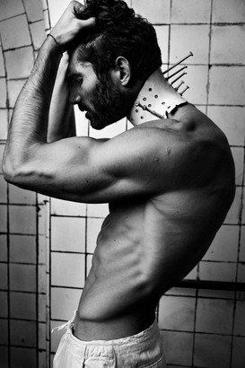 Powerful image!!!!!!!! It says so much about judgement in general - expressed so well by the composition of his arm and the girl behind him....she is faceless, her visible skin is untouched by tattoos or piercings and it looks as if her head is pointed down, having nothing to say but taking no part...having no judgement. Because just as everyone else in the world, who are we to judge?