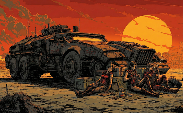 #warrior #digitalart #anime #conceptart #characterdesign #digitalpainting #scifi #cyberpunk #ambush #attack #dieselpunk #guns #industrial #postapocalyptic #raiders #weapons #midjourney