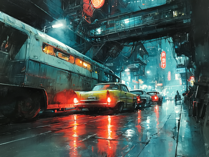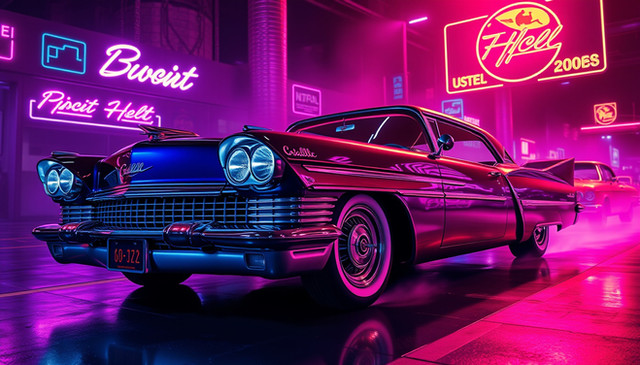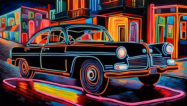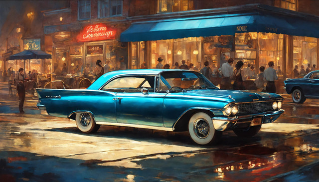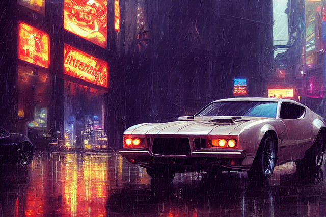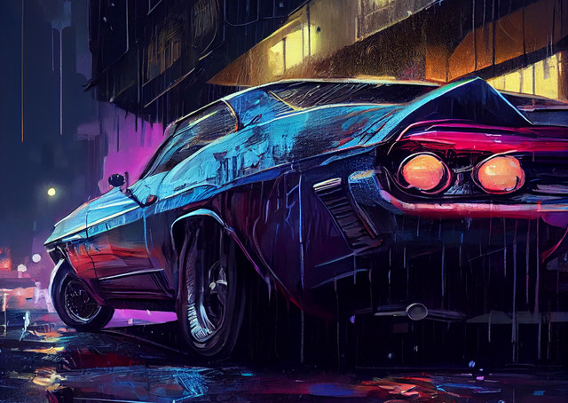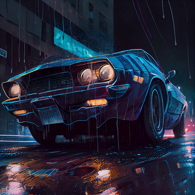 #digitalart #digitalpainting #car #vehicle #architecture #vintage #dieselpunk #futuristic #impressionism #musclecar #neon #night #oldcar #rainynight #retro #retrocar #sportscar #neoncity #midjourney