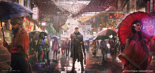 This is very cool, I like the design of the characters, the look of the city, even the dreary drizzly atmosphere. Very nicely done.