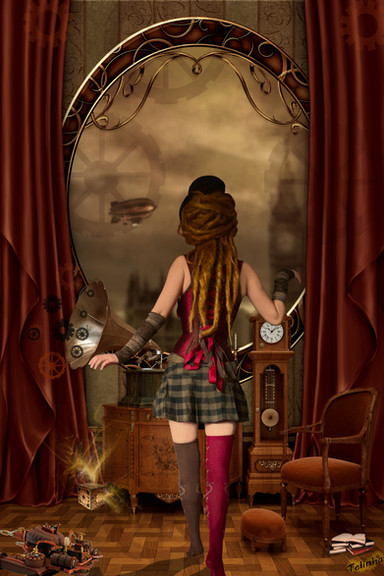Almost 200 layers on main image + 90 on the "view from the window", literally weeks of works.. Every night I sat behind my computer and worked on it.. Some crashes, some mid-results I were not happy but But I am very happy with the final result. I have tried before making steampunk images but apparently it have not worked.. Now I have something finished.