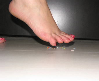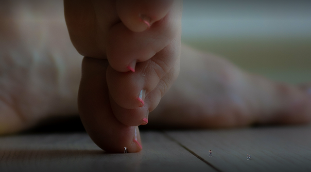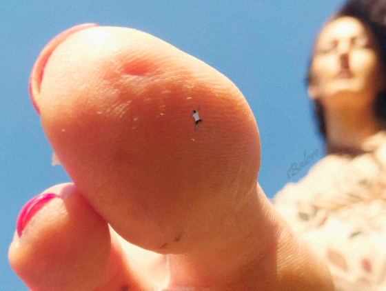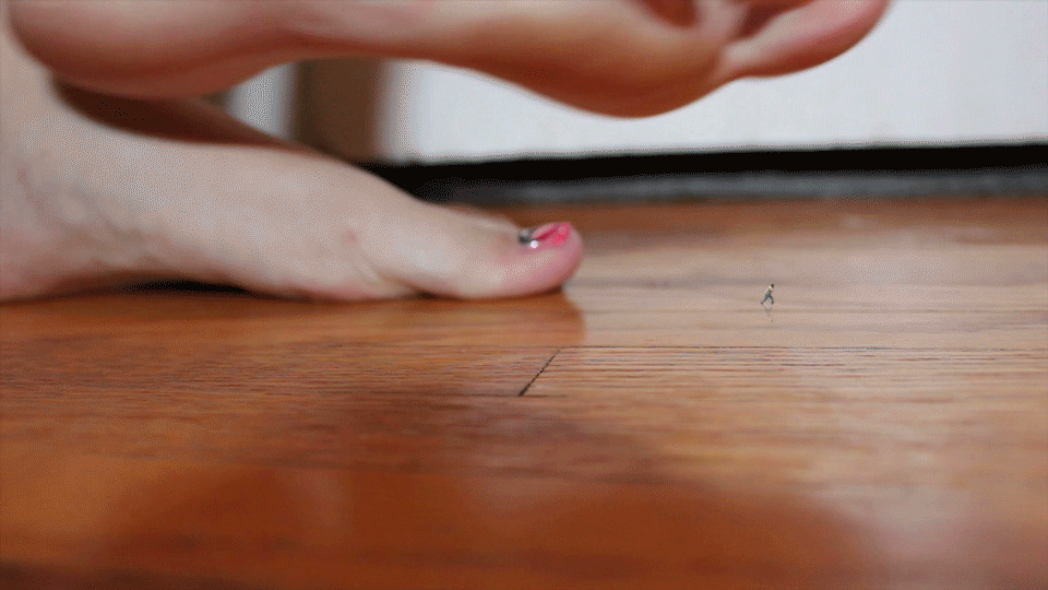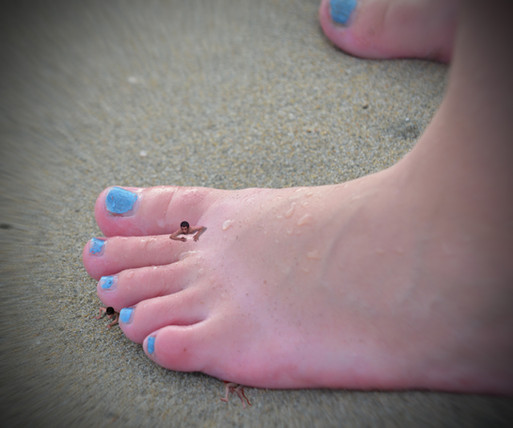 True. Unless she stays still or he moves, he could get squashed in an instant. Just look how small he is compared to that toe!