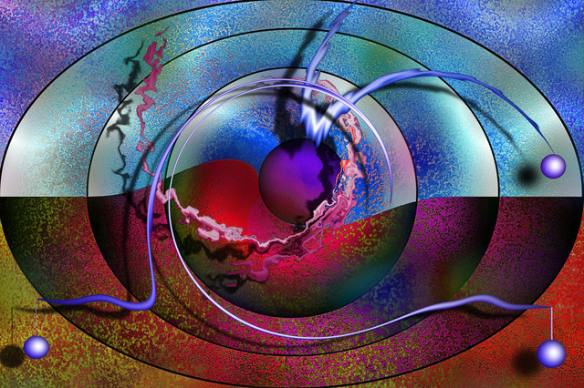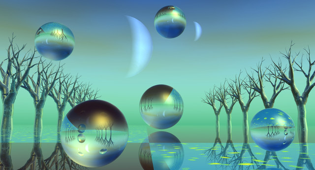 This is version 2, I added an adjustment to the spheres.I used HP photo impression 3.0,acdsee photo enhance, Microsoft picture it! Photo 2002, and Paint Shop pro 7, to create this wall.