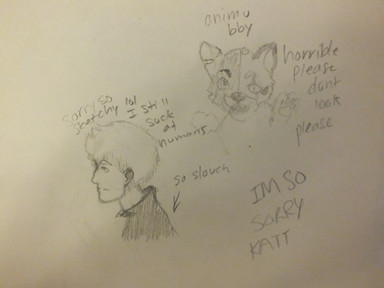 Is he a dog? Idk. I like to say that he is. I found him on the side of the street and took him home. He always looks this suspicious but hes actually really happy to see you right noW! aLso he smells and feels like a wet hot dog. Idk. I love him.(This art belongs to me! thanks for looking at it :> )