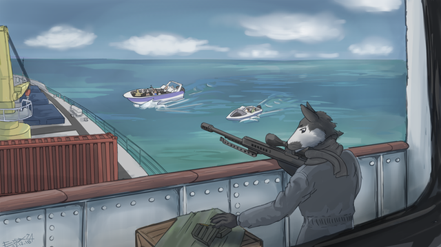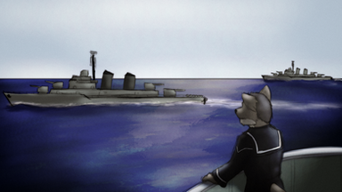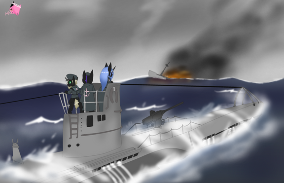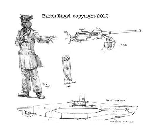 It's whimsical and fun considering the original theme concerning Das Boot. I actually like this piece and the way it has been presented. It isn't a dark piece, it's light despite the somber colors used.