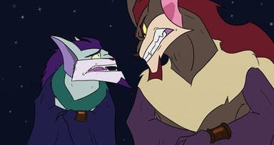 Scene from near the end of Firewing, when Cama Zotz makes Goth look like Shade, in order to trick Griffin so he could kill him.