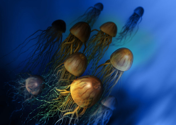 Very pretty and serene. I like how you showed the depth of water behind the jellyfish, it helps convey that feeling you get underwater when you go deeper and the water gets colder.