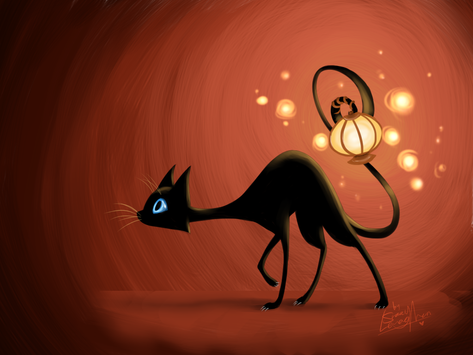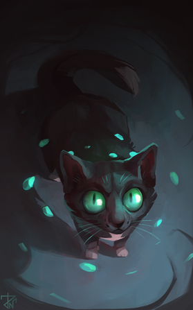 Oh wowww! I love this! The glowyness is SO pretty, and I love black cats with green eyes - I have one of my own!