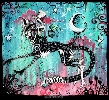 -Personality wise, some sort of twisted gentlemanly figure, really likes confusing people with weird logic and crazy vocabulary? Likes riddles and things, guess he's a sphynx minus the human face and plus really weird black and white markings and a lolita-esque tophat. xD
