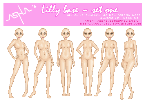 Finally got around to updating most of the lilly bases so here is the first set with the new face, fingers, toes, light source correction and a small amount of anti-aliasing. Also some pose adjustment in a couple of cases.Hopefully these are a lot more usable and I hope you like! =)