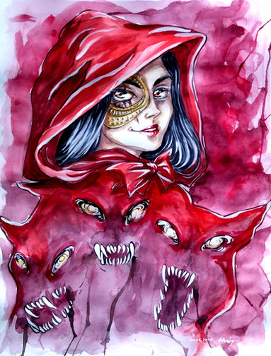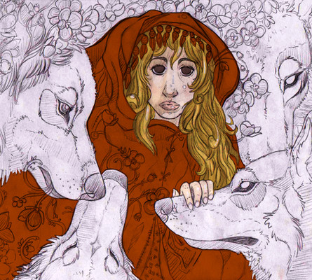 I like how sinister it looks when she about to go in the wolf's mouth.