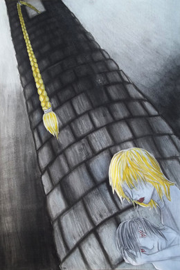 Concentration Piece for AP Studio Art: Drawing.My Idea was to do the Grimm Fairy Tales which are the more original and much less known version of the Disney Movies we watch as kids.