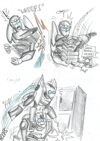 I'm not... entirely sure what's going on, but I'm going to hazard a guess that Prowl is "interrupting" Jazz's work.