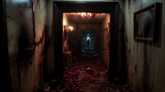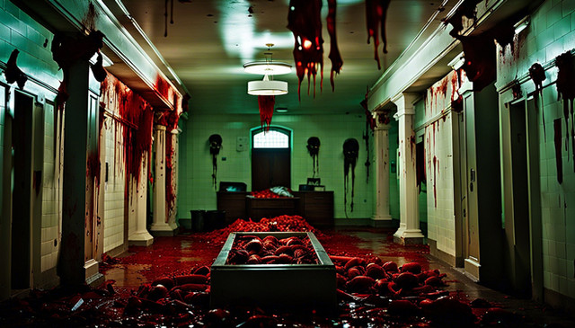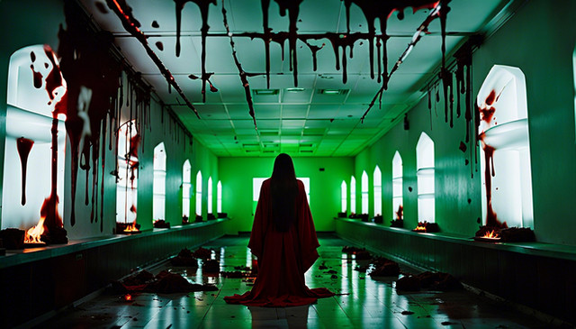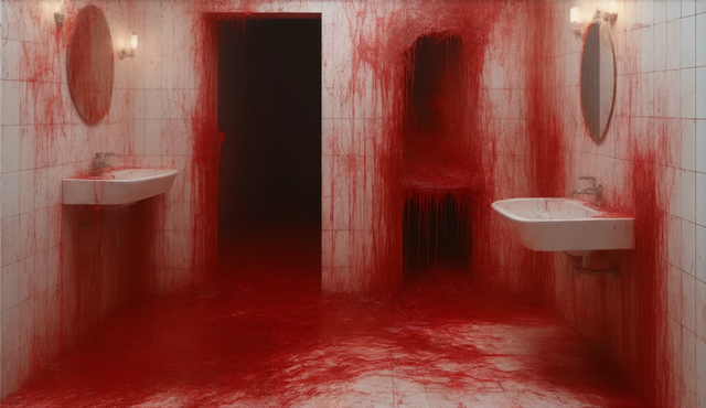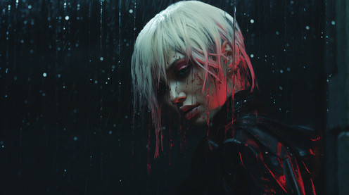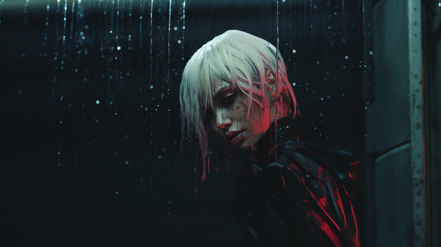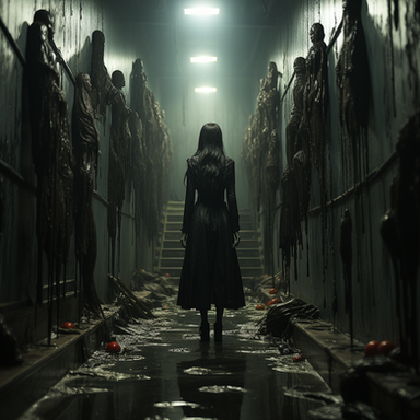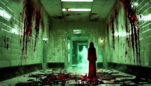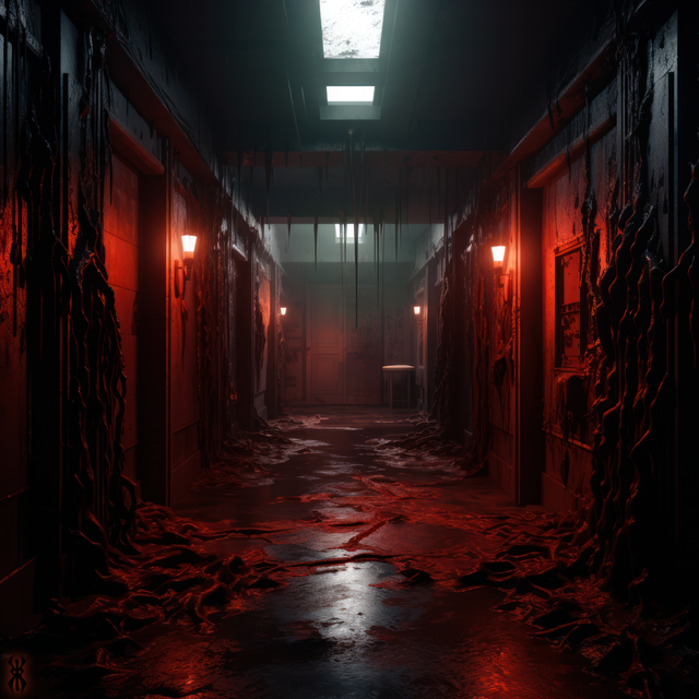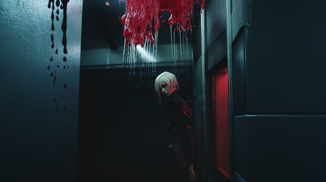 #acid #ai #alice #black #blonde #blood #creepy #dark #girl #hallway #haunted #here #jacket #leather #rain #red #scenes #she #something #unexpected #women #wrong #look #gives #says #midjourney #midjourneyart
