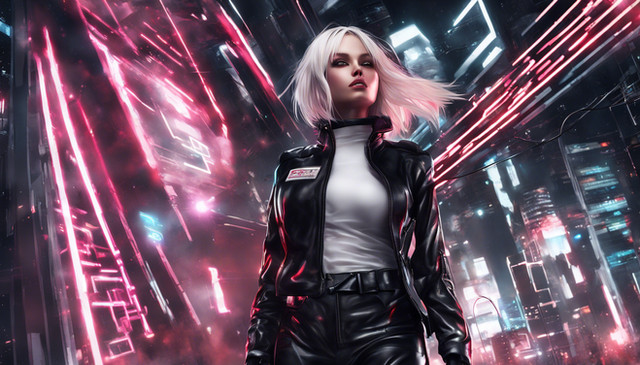 #ai #alice #blonde #character #girl #hair #jacket #leather #lighting #red #unexpected #women #midjourney #midjourneyart