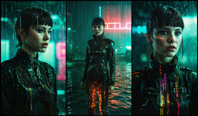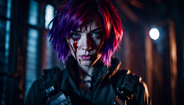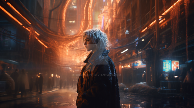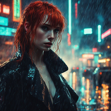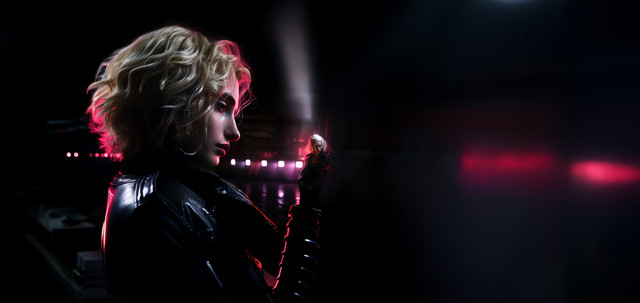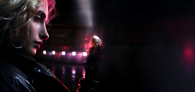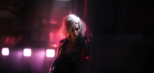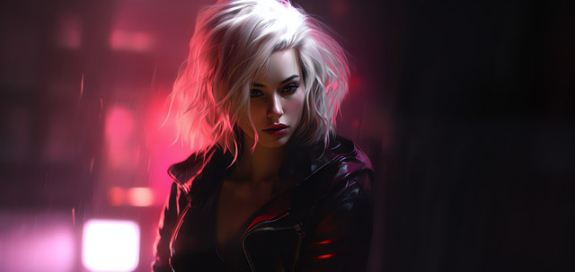 #acid #ai #alice #blonde #dark #girl #jacket #leather #light #rain #red #scenes #she #something #unexpected #women #wrong #look #gives #says #midjourney #midjourneyart