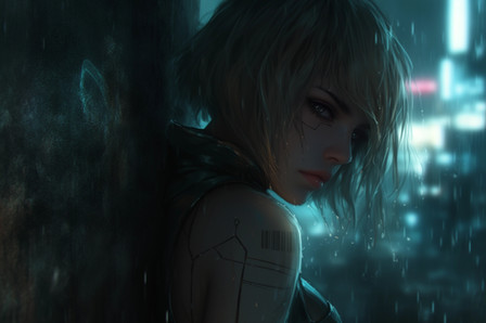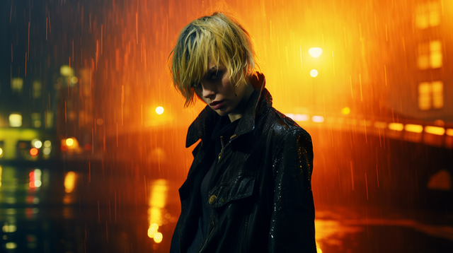 #acid #ai #alice #blonde #girl #jacket #leather #light #rain #red #scenes #she #something #unexpected #women #look #gives #says #midjourney #midjourneyart