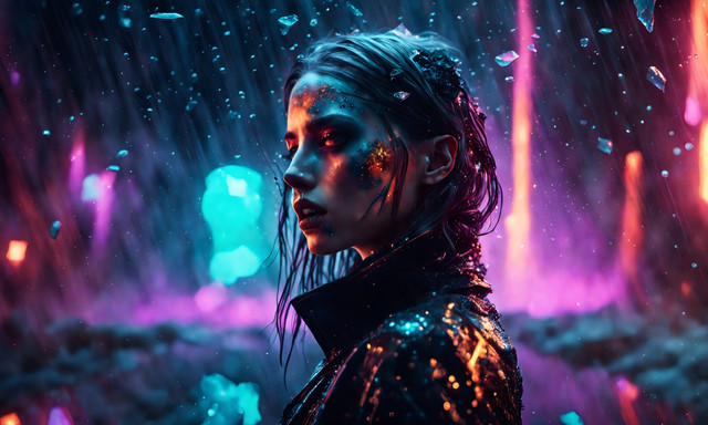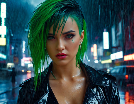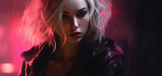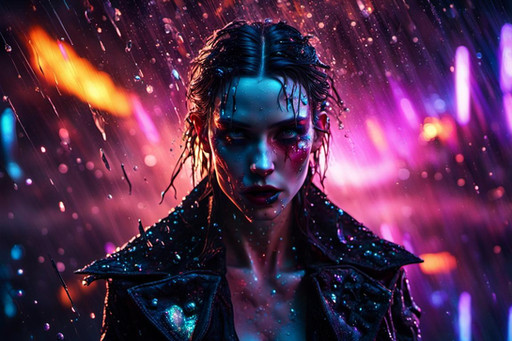 #ai #alice #blonde #drops #girl #jacket #leather #rain #she #unexpected #wet #women #look #gives #midjourney #midjourneyart