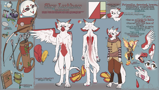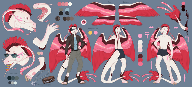 Alice finally has a proper reference! Pretty happy with out it came out - the clothes took forever (mostly just holding my head in my hands trying to figure out how to make them work). Her wings have slits cut into them close to her back, allowing fabric to reach around her body, covering her back.The pins on her coat are (in order of left to right, top row then bottom): Scales (representing the goddess Nemesis), the trans flag, the Venus symbol (implying her pronouns are she/her), the polyamorous flag, and the bisexual flag.