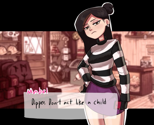 You know, a part of me see this as Reverse Mabel meeting Canon-Dipper who's gotten lost in another universe (possibly swapping with Reverse Dipper) and Dipper being scared of her for for a second (this picture, reminds him of his Gideon). But then Reverse Mabel sort smiles shyly and Dipper sees his own Mabel shining through. Reverse Mabel then would reassure Dipper that she'll help him no matter what as, in Reverse Falls, Reverse Dipper is the one person that Reverse Mabel cares about with no caveats, and she extends that love to canon-Dipper.