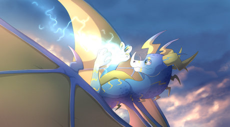 This is so amazing! Seeing electric dragon boi soaring though the sunlit misty scenery is absolutely stunning!π€©