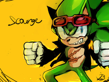 great job, but I think that this is not scourge, this is sonic colored green with a black jaket, but his shoes is different, but next time make scourge more different from sonic.